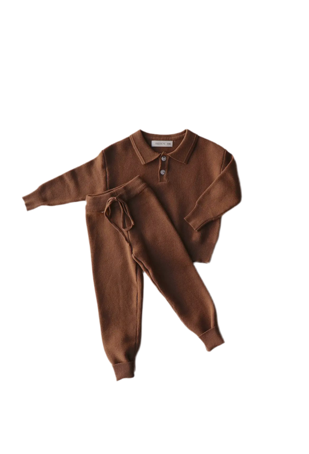 This lightweight knit set with a classic brown collar is perfect for your active guy who loves to move and look sharp. From fall family photos to Thanksgiving dinner, he’ll be camera-ready and cozy for every special moment. Style + comfort = a win for everyone!